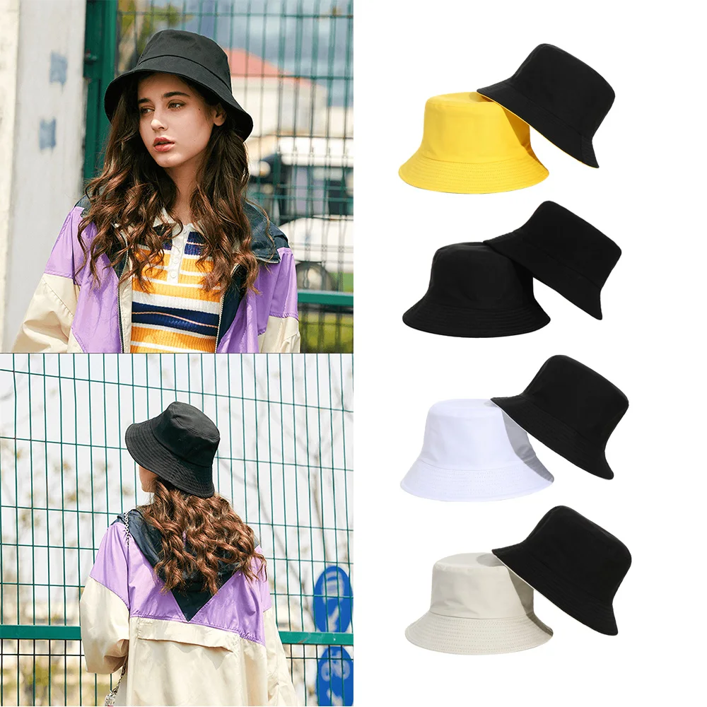 New Unisex Cotton Bucket Hats Women Summer Sunscreen Panama Hat Men Pure Color Sunbonnet Fedoras Outdoor Fisherman Hat Beach Cap